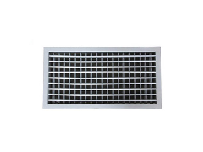 铝合金双层百叶风口,广泛应用于空调系统中作送风口,根据使用要求,风口后面可配制铝制风量调节阀(人字闸),双层百叶风口具有两层相互垂直页片调节水平和垂直页片的角度,调整气流扩散面,以改变射程,风口的外框宽度有宽边框和窄边框两种,可用于特殊要求的通风系统中。双层百叶风
